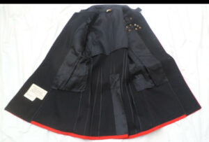 - Coat: Dark blue with a standing collar, red piping, and gold buttons featuring the Eagle, Globe, and Anchor (EGA) emblem.